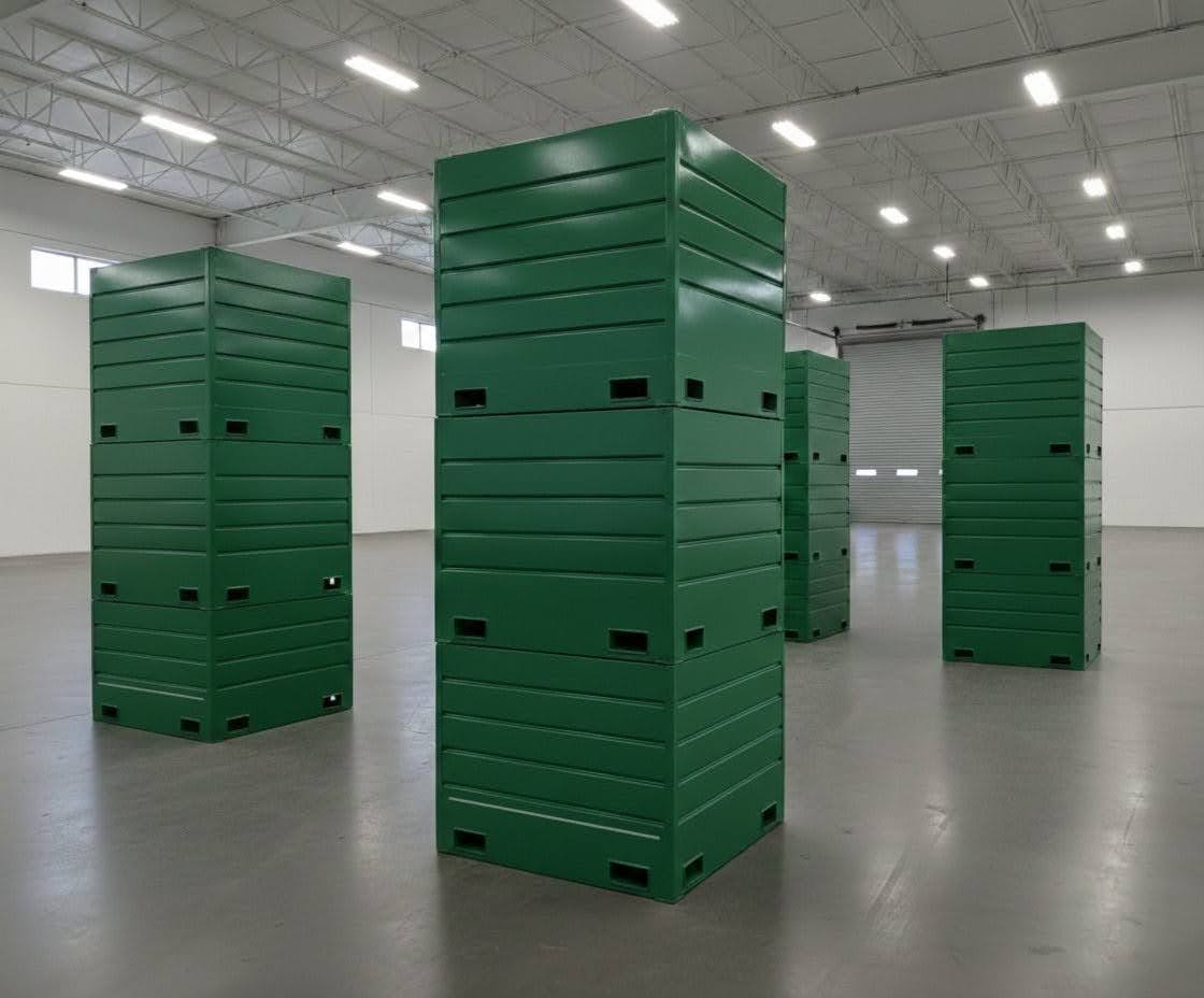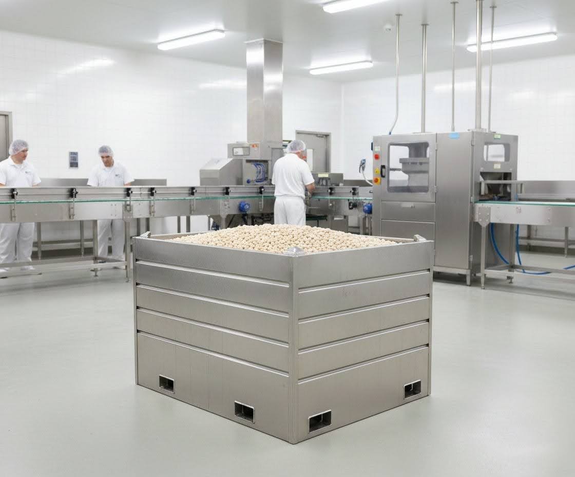 Robust, standardized containers allow safe stacking, efficient handling, and compatibility with forklifts, automated systems, and trucks.